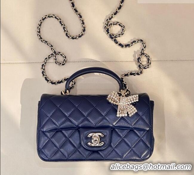 Buy Grade Chanel Lambskin Leather Mini Classic Flap Handbag With Top Handle and Bow Charm AS2431 Navy Blue 2026