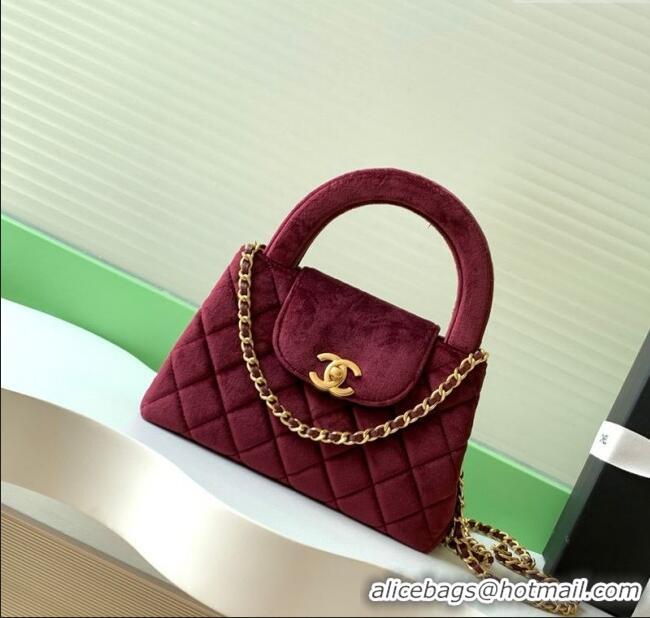 High Quality Chanel Velvet Mini Kelly Shopping Bag AS4416 Dark Red 2025