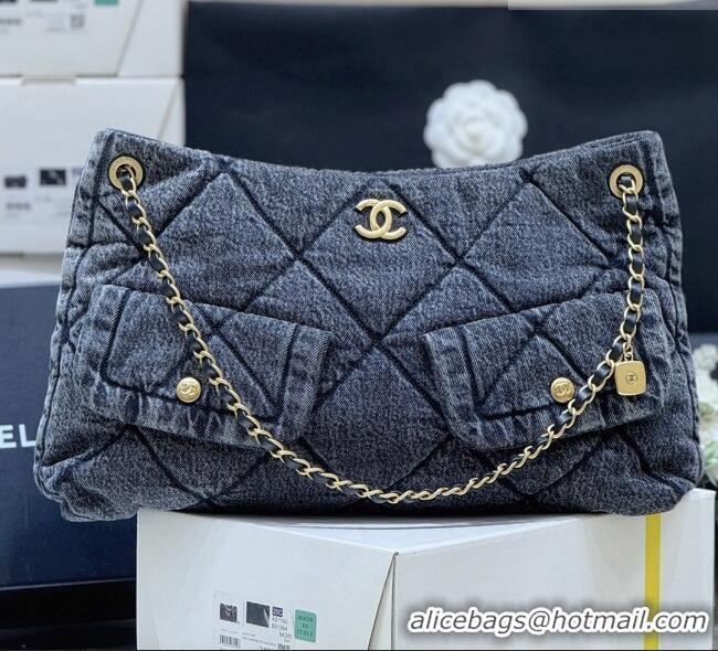 Buy Inexpensive Chanel Washed Denim Shopping Bag with Pockets Black AS5740 2025 Top Quality