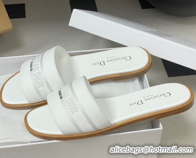 Best Grade Dior Dway Flat Slides Sandal in Grained Calfskin Leather White 0822065