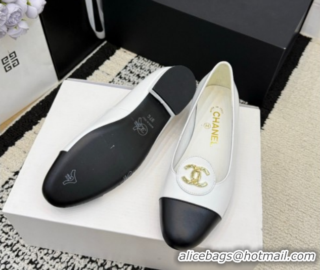 Stylish Chanel Calfskin Leather Ballets Flat with Circle CC CH030706 White 2026