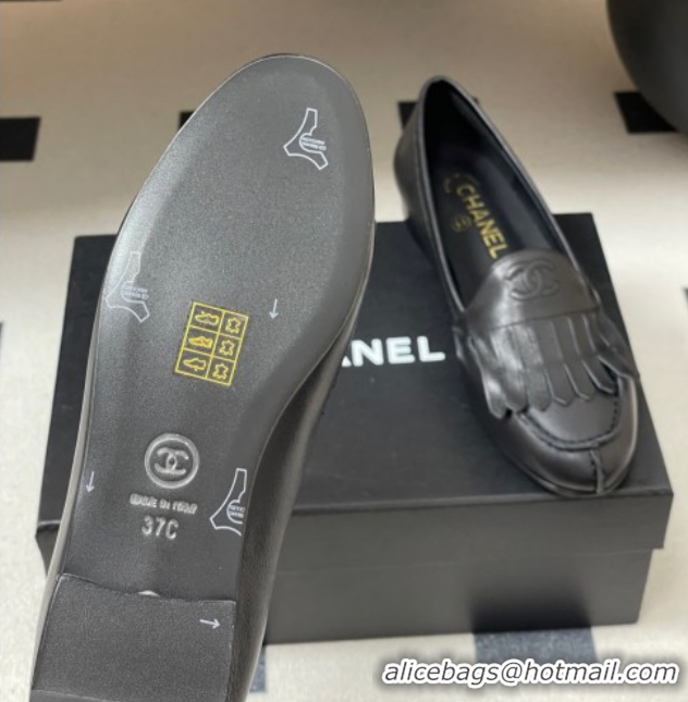 Hot Style Chanel Calfskin Leather Flat Loafers with Tassel Black 2025 CH103104 1031108
