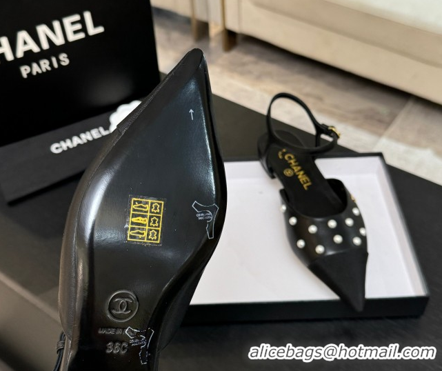 Buy Luxury Chanel Lambskin & Grosgrain Flats Slingbacks with Pearls Black 2025 CH110314 1103117