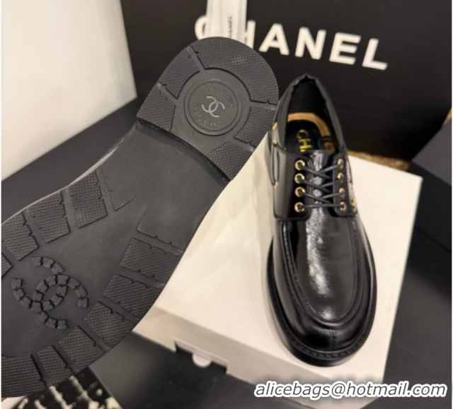 Buy Luxury Chanel Shiny Calfskin Leather Laced-up Shoes CH030615 Black 2026