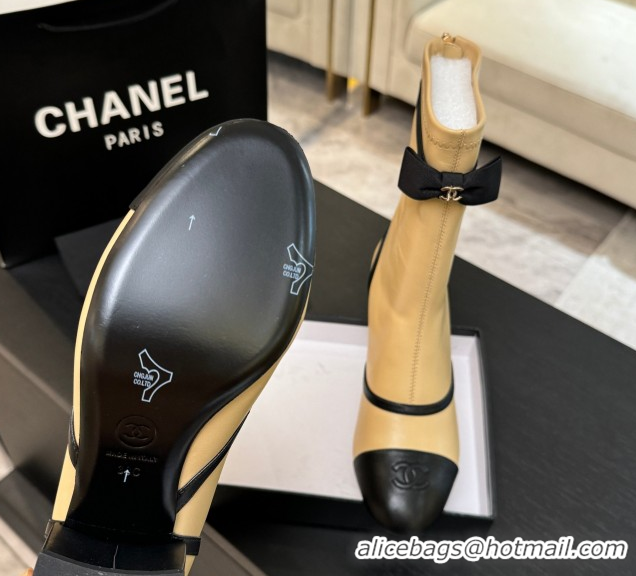 Buy Luxury Chanel Stretch Lambskin Short Boots 5cm with Bow Beige Yellow 2025 G46755 51104023