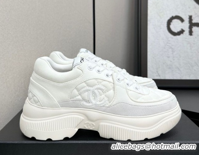 Top Grade Chanel Suede and Quilted Fabric Platform Sneakers White 16 2025 CH110102 1101016