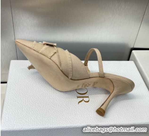 Buy Luxury Dior Adiorable Heeled Strap Mules 7cm in Fringed Grosgrain with Pearls Bow Beige 0822033