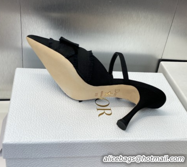 Durable Dior Adiorable Heeled Strap Mules 7cm in Fringed Grosgrain with Pearls Bow Black 0822034