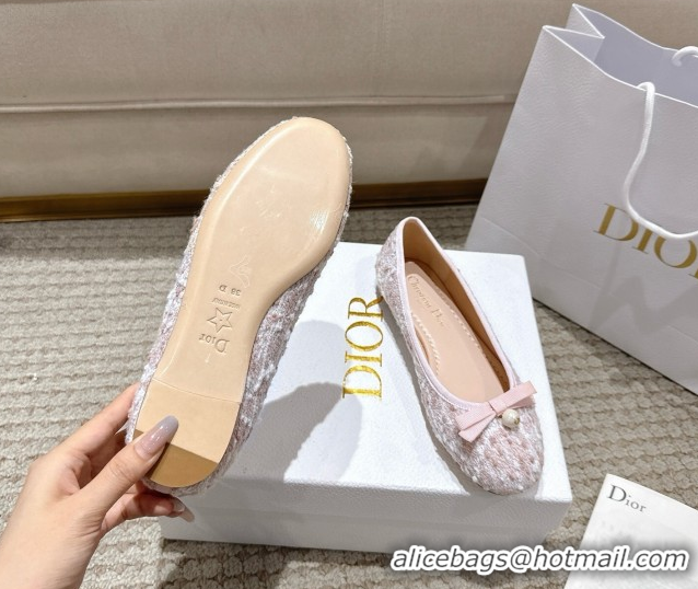 Discount Fashion Dior Ballet Flats in Quilted Cannage Tweed with Pearl Bow Pink 0822011