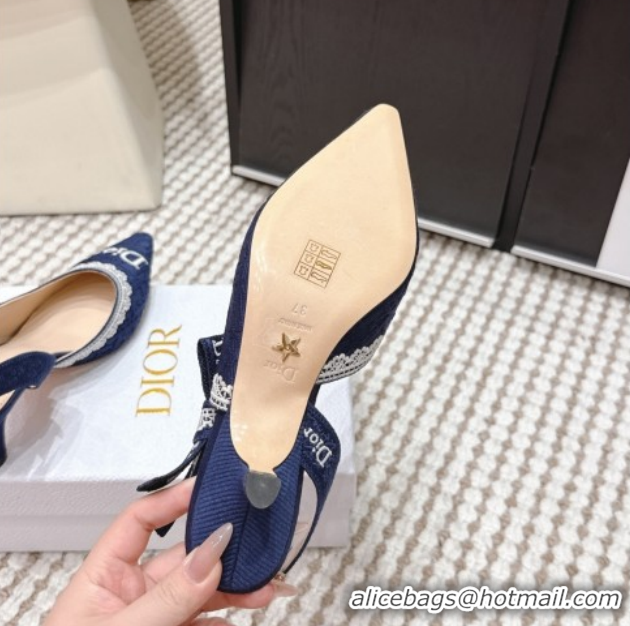 Buy Luxury Dior J'Adior Pump 6.5cm Heel in Blue Dior Oblique Embroidered Cotton and White Lace 6012234 2026