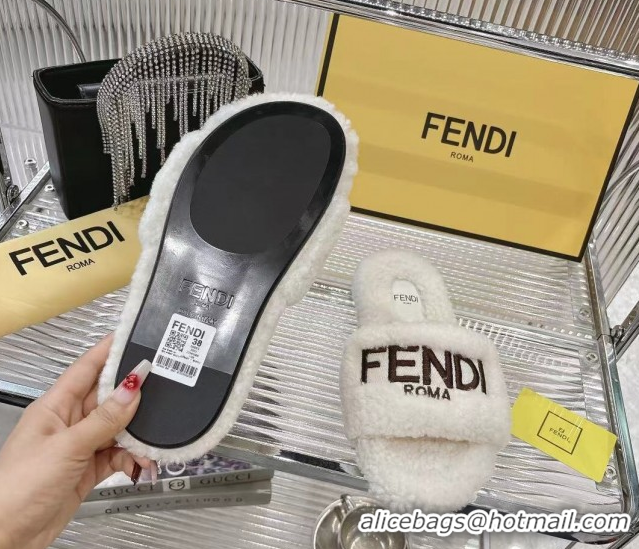 Your Position: Home > Shoes Plaza > Fendi Shoes > Buy Luxury Fendi Flat Slides Sandal in Shearling Wool White 2025 FE103002 1030013