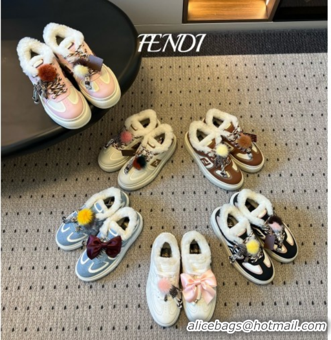 Good Looking Fendi Match Low Top Platform Shoes in White Leather & Shearling with Charm Black 5122910 2026