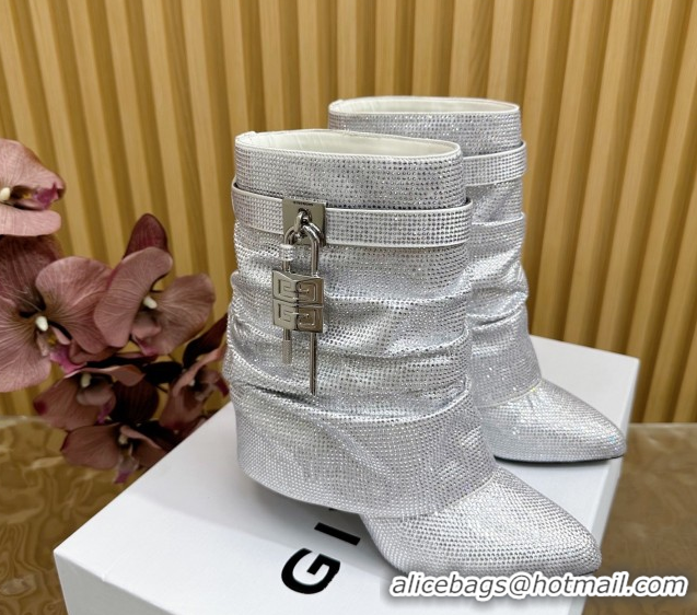 Buy Luxury Givenchy Shark Lock Stiletto Ankle Boots with Crystals 101118 White 2026