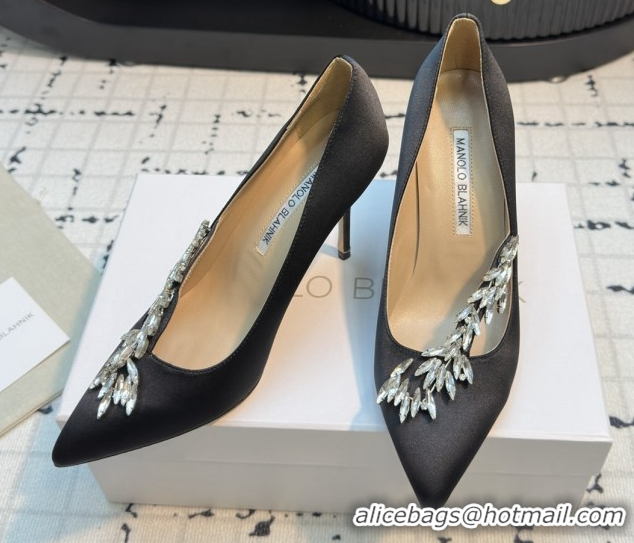 Duplicate Manolo Blahnik Satin Pumps with Wheat Ear Rhinestone 9cm Heel 5112507 Black 2026