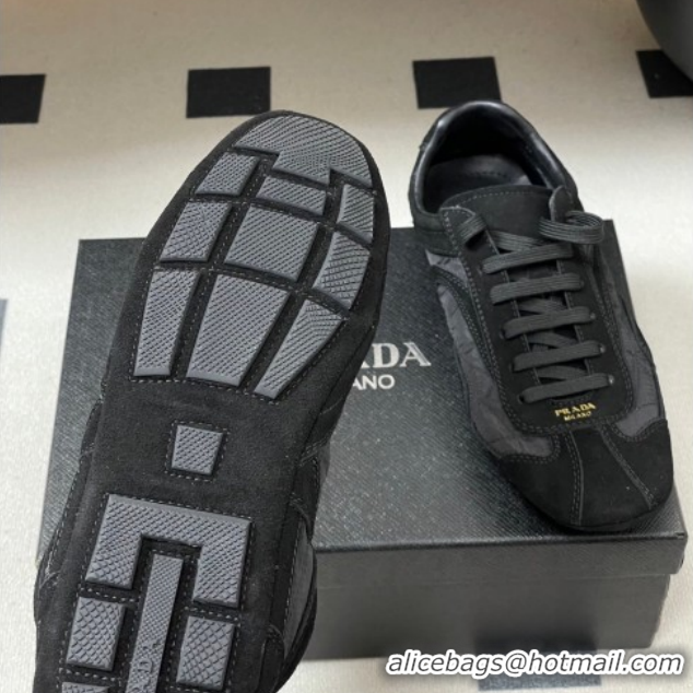Best Grade Prada Montecarlo Re-Edition 2005 suede and Re-Nylon sneakers Black 1E247O 0228064