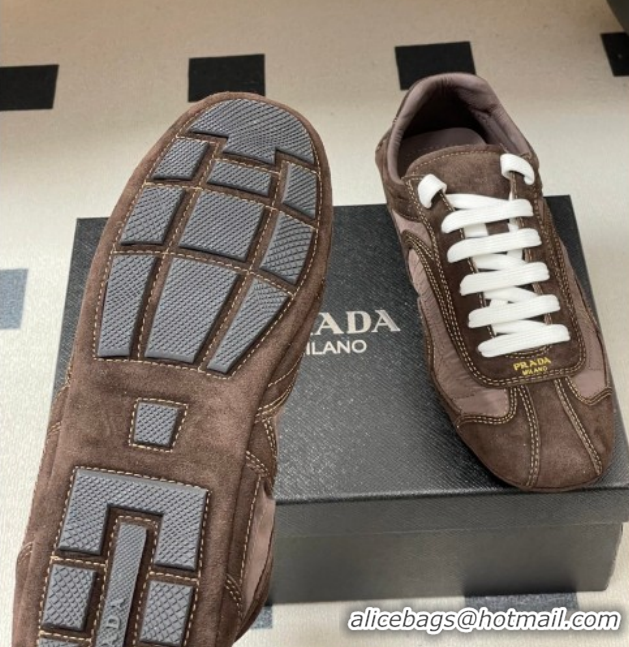 Buy Luxury Prada Montecarlo Re-Edition 2005 suede and Re-Nylon sneakers Dark Brown 1E247O 0228066