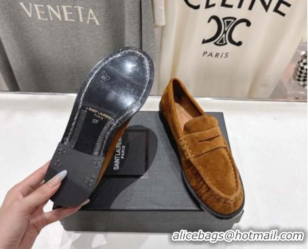Popular Style Saint Laurent Le Loafers Penny Slippers in Suede Light Brown 1028128