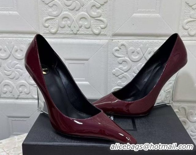 Classic Hot Saint Laurent Patent Leather Wedge Pumps 10.5cm with Clear Heel Burgundy 2026 SL022405