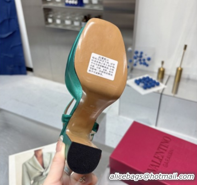 Buy Luxury Valentino Vlogo Signature Platform Pumps 11cm with Strass in Laminated Nappa Leather Green 0902070