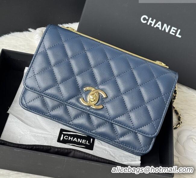 Buy New Cheap Chanel Lambskin Wallet On Chain WOC with Top Metal Band 6841V Blue 2026