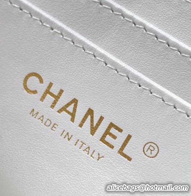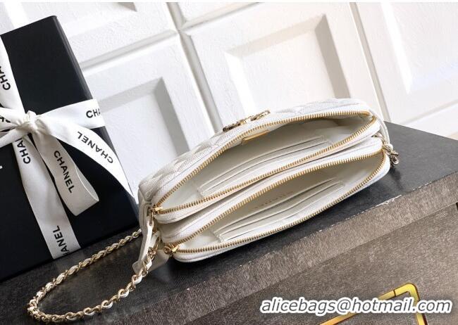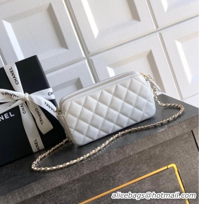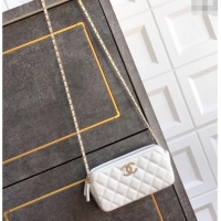 > Chanel Handbag > Chanel 2025 Bags > Luxury Discount Chanel Grained Calfskin Zipped Phone Holder with Chain and Strass CH101102 White 2025