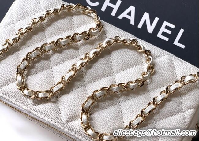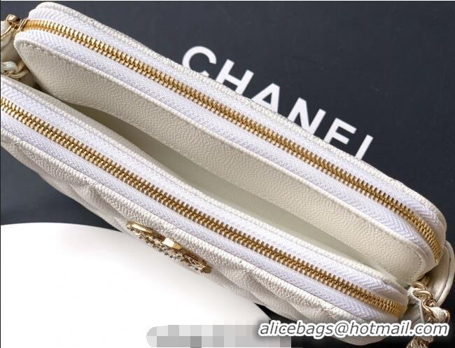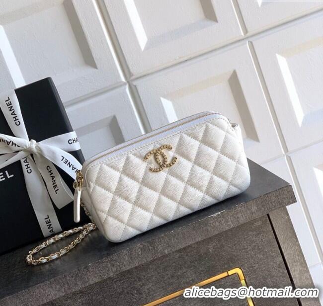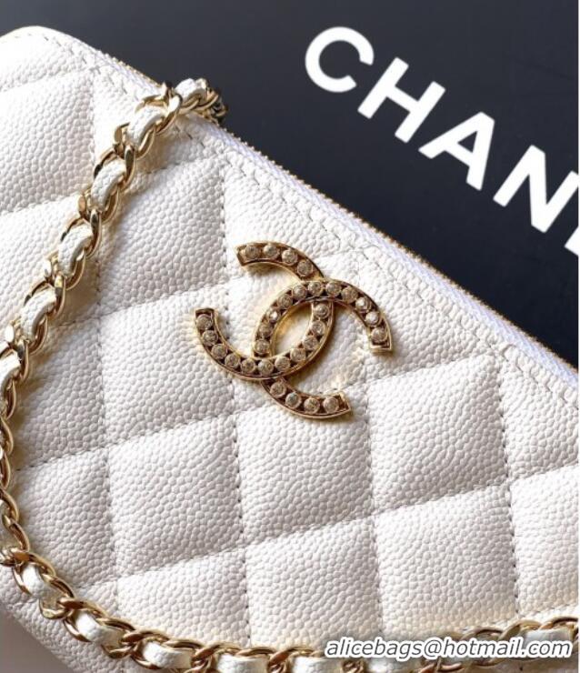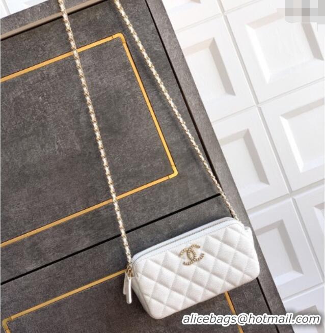 Luxury Discount Chanel Grained Calfskin Zipped Phone Holder with Chain and Strass CH101102 White 2025