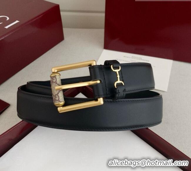 Luxury Discount Gucci Horsebit Calfskin Leather Belt 3cm 0617 Black 2025