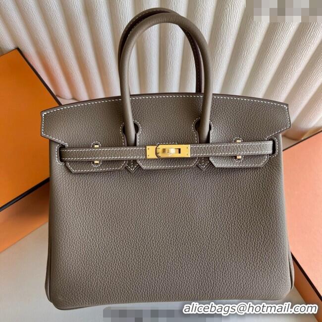 Your Position: Home > Hermes Handbag > Hermes Birkin 25CM > Top Quality Hermes Birkin 25cm Bag in Togo Calfskin Leather HE25 Elephant Grey/Gold 2025 (Full Handmade)