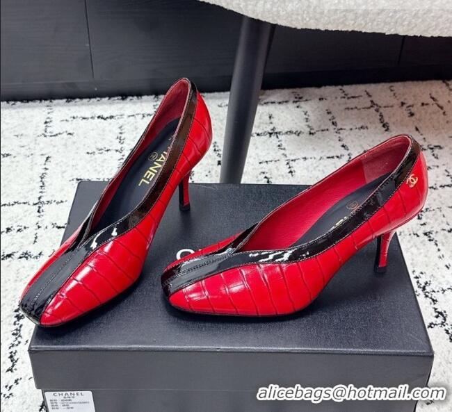 Super Quality Chanel Pumps in Crocodile Embossed Calfskin & Patent Calfskin G47181 Red/Black 2026
