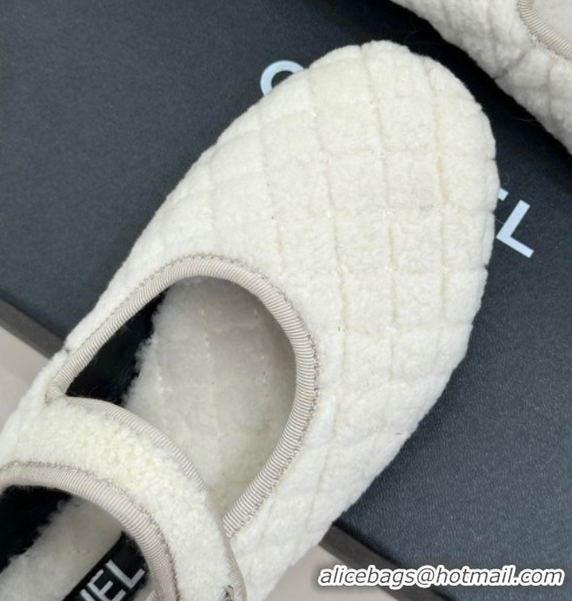 Good Product Chanel Quilted Wool Mary Janes Ballets Flat White 2025 CH110301 1103061
