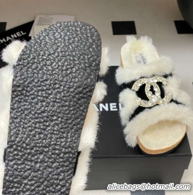 Shop Duplicate Chanel Suede and Wool Platform Slides Sandal with Strass CC Black 2025 CH110308 1103092