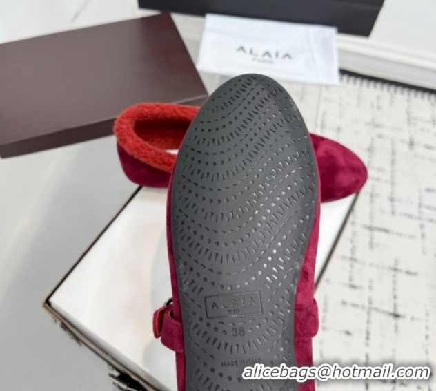 Charming Alaia Ballet Flats in Suede and Shearling 2026 AL102901 Red