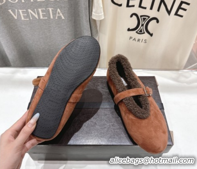 > Shoes Plaza > Alaia Shoes > Charming Alaia Ballet Flats in Suede and Wool Brown AL102901 1209010