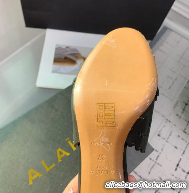 Grade Quality Alaia Heel Slides Sandal in Openwork Leather Black 1223031