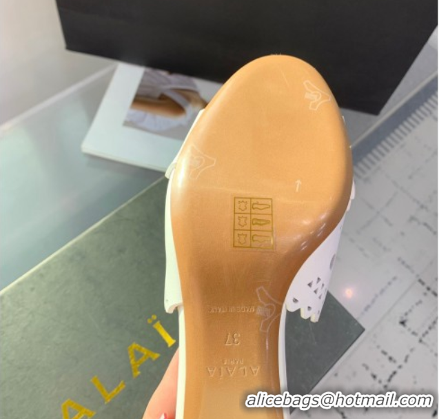 Charming Alaia Heel Slides Sandal in Openwork Leather Snow White AL122302 1223033