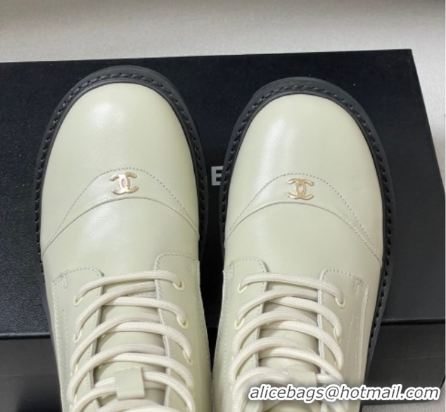 Charming Chanel Calfskin Leather Laced-up Ankle Boots CH110404 White 2026