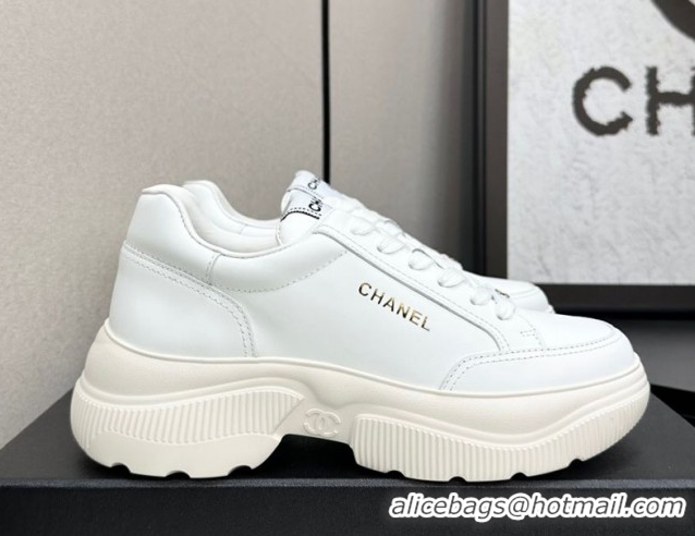 Stylish Chanel Calfskin Leather Platform Sneakers with Signature White 2025 CH110103 1101030