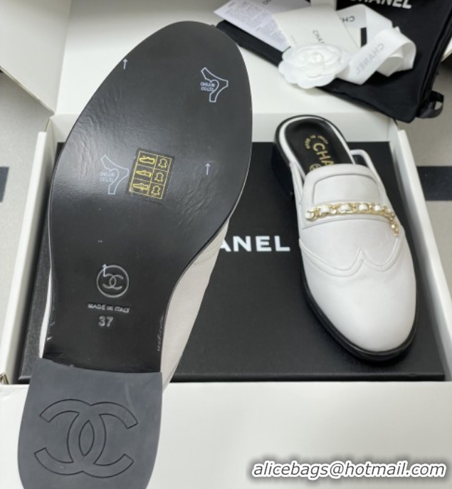 Charming Chanel Calfskin Mules with Chain CH9344 White