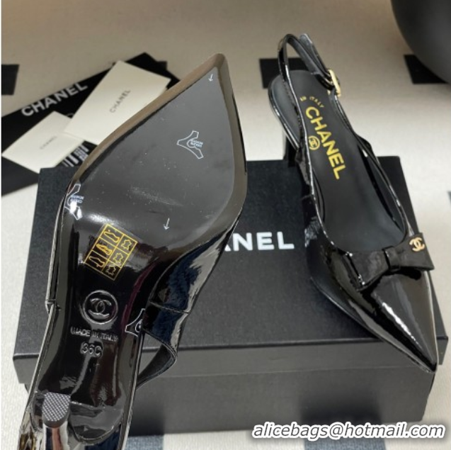Charming Chanel Crumpled Patent Calfskin Slingbacks 7.5cm with Bow Black G46547