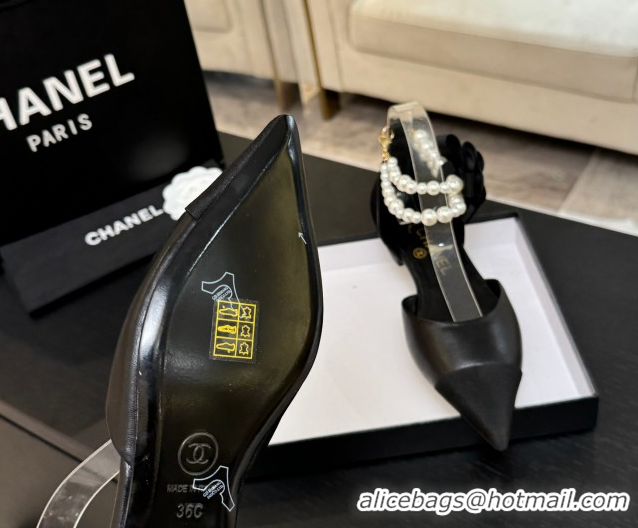 Charming Chanel Lambskin & Grosgrain Flats Shoes with Pearls and Camellia Bloom Black 2025 CH110313 1103114