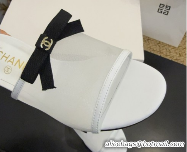 Luxury Cheap Chanel Mesh Heel Slides Sandal wih Bow G47023 White 2026