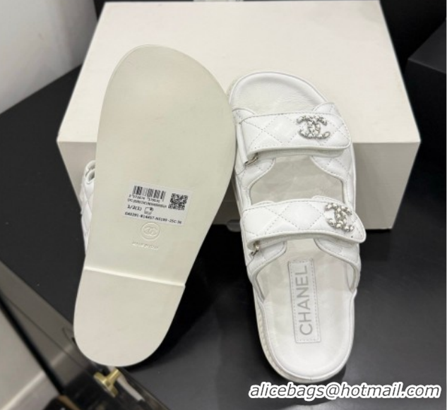 Sophisticated Chanel Lambskin Leather Strap Flat Slides Sandal with Chain CC CH030614 White 2026
