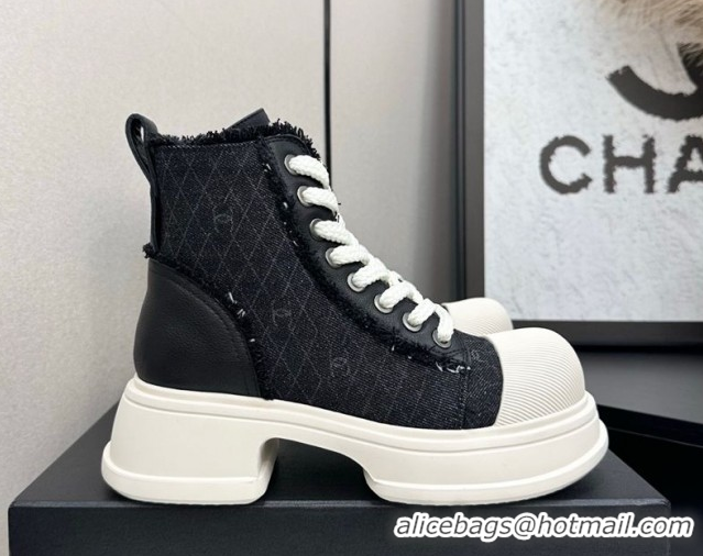 Charming Chanel Quilted Denim and Fringe High Top Platform Sneakers Black/White 2025 CH110108