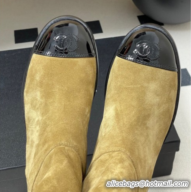 Luxury Chanel Suede and Patent Leather Flat Ankle Boots 3.5cm with Chain Beige CH110403 1104031