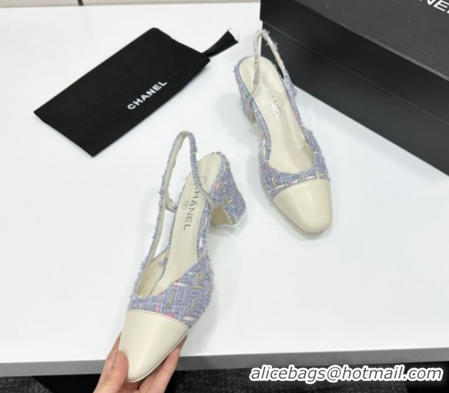 Charming Chanel Tweed & Leather Slingbacks Pump 6.5cm G31318 Purple/White 2026