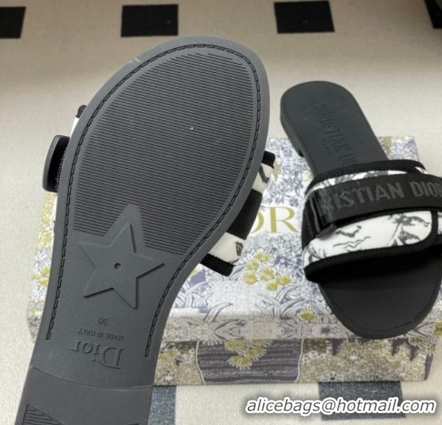 Your Position: Home > Shoes Plaza > Chrisitan Dior Shoes > Luxury Cheap Dior Dio(r)evolution Flat Slides Sandal in Technical Fabric with Strap Print/White/Black 2026 0302098