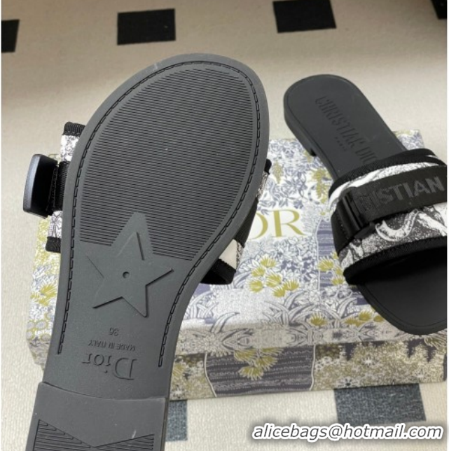 Perfect Dior Dio(r)evolution Flat Slides Sandal in Technical Fabric with Strap Black/White 2 2026 0302095