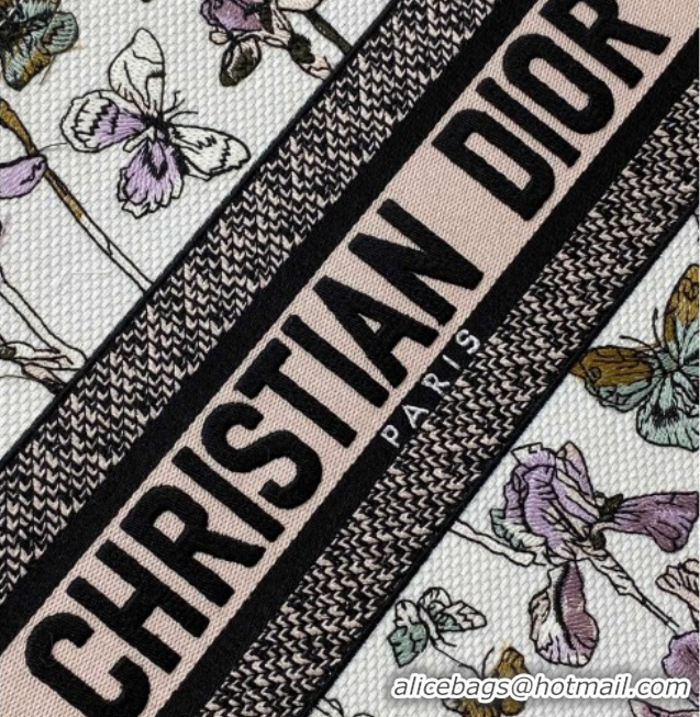 Best Product Dior Medium Book Tote Bag in Latte White Multicolor Butterflies & Iris Purple Embroidery 60126080 2026