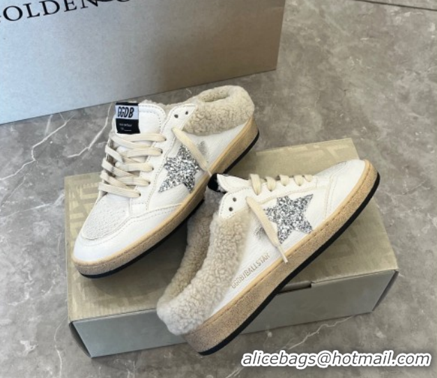 Hot Style Golden Goose Women’s Ball Star Sabots Sneaker in white leather and wool with silver glitter star 51031056