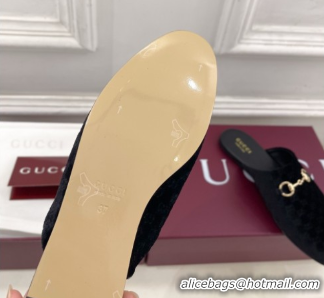 Good Quality Gucci GG Velvet Flat Mules with Horsebit Black 1020036